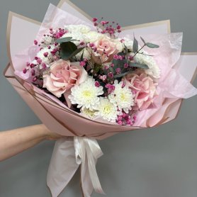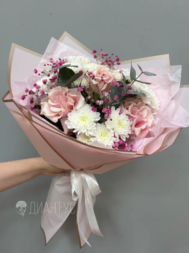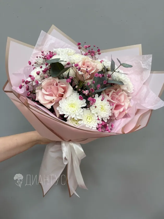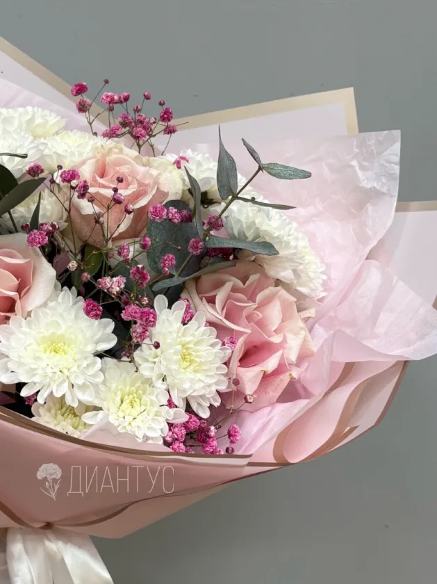 «Букет Лав» — это воплощение нежности и изысканности, созданное для того, чтобы дарить искренние эмоции. В его основе — пышные кустовые хризантемы, символизирующие долголетие и благополучие. Изысканные французские розы добавляют букету романтизма и утонченности. Нежные веточки эвкалипта придают композиции легкую свежесть и утонченный аромат. Воздушная гипсофила, словно звездная пыль, окутывает цветы невесомой вуалью. Этот букет станет идеальным подарком для выражения самых теплых чувств: любви, признательности или просто желания порадовать близкого человека. Он идеально подойдет для любого торжества или как знак внимания без особого повода. «Букет Лав» — это больше, чем просто цветы, это изысканный комплимент и теплое послание. Подарите «Букет Лав» и заставьте сердце биться чаще.