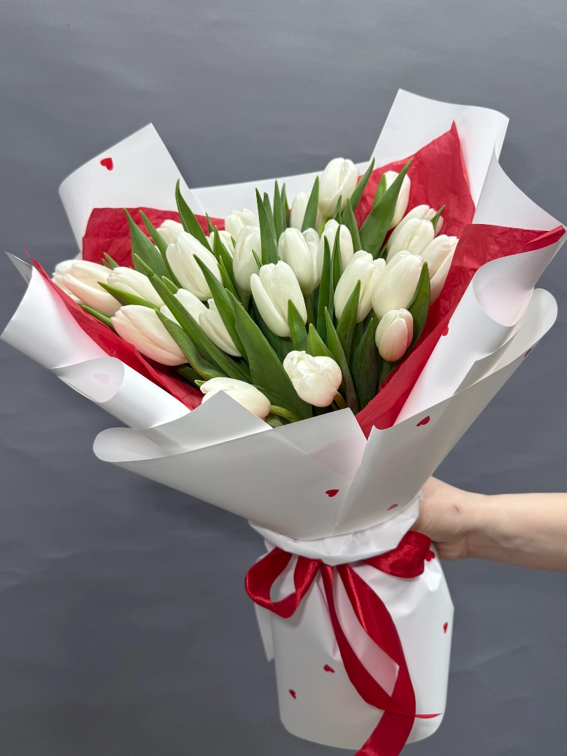 Погрузитесь в Весеннюю сказку с нашим букетом из 25 белоснежных тюльпанов, подарком, который обязательно порадует каждого на любой праздник. Этот изящный и свежий букет станет отличным выражением ваших чувств и радости. Тюльпаны, символизирующие любовь и уважение, создадут особую атмосферу уюта и тепла. Идеально подходит для подарка близким, для украшения дома. Наши тюльпаны свежие и аккуратно собраны, чтобы радовать вас как можно дольше. Закажите сейчас и превратите любой день в яркое весеннее событие!