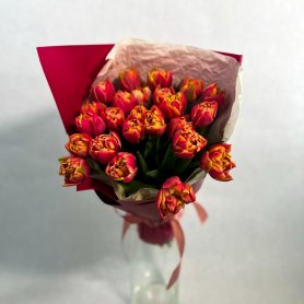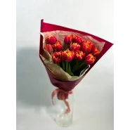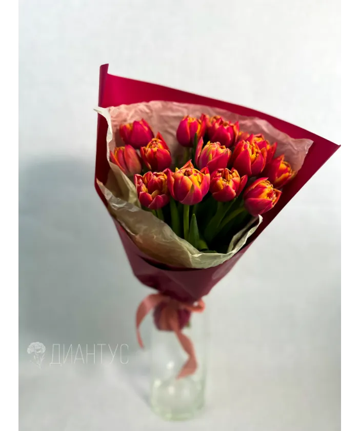 Букет из красно-желтых пионовидных тюльпанов