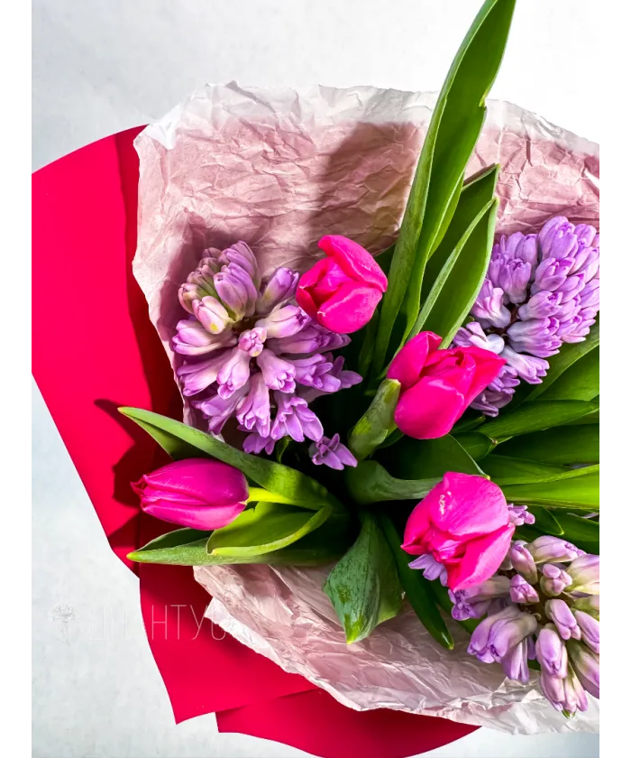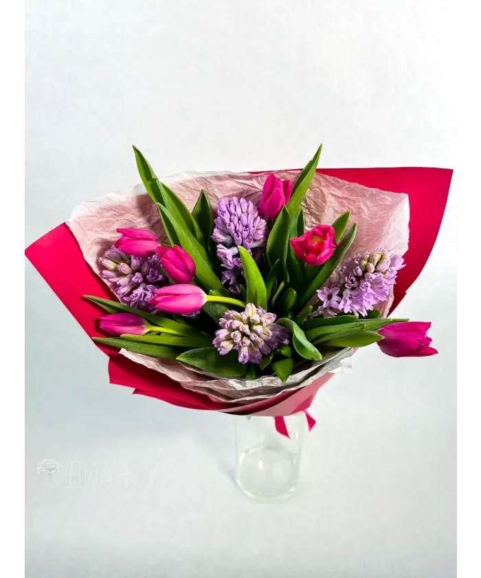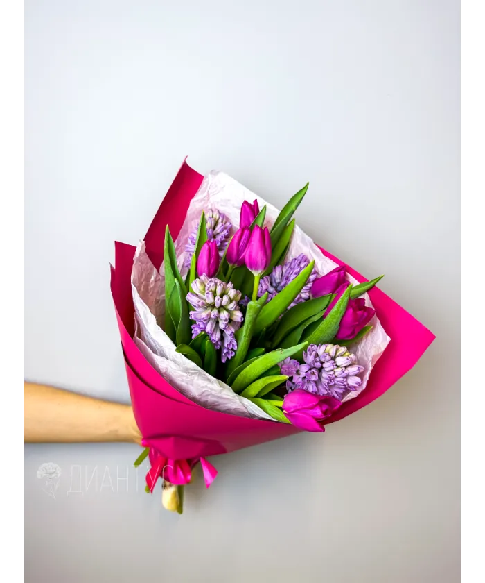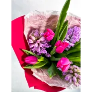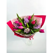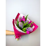 Букет из розовых тюльпанов и гиацинтов