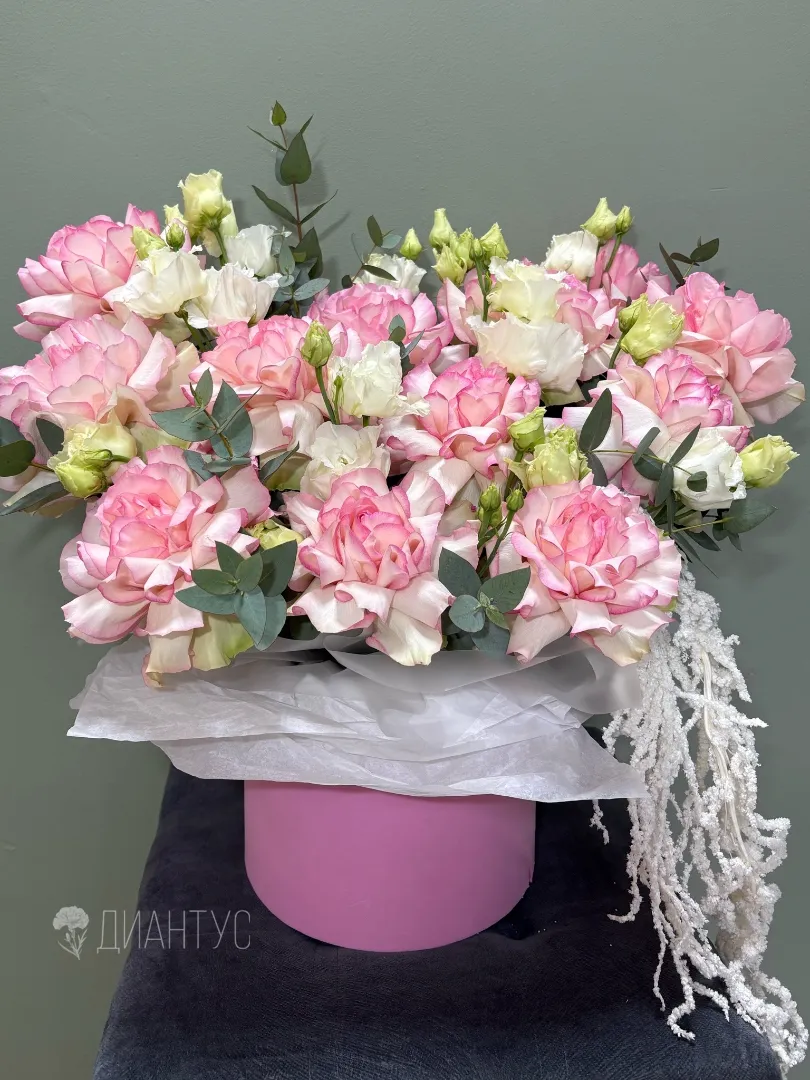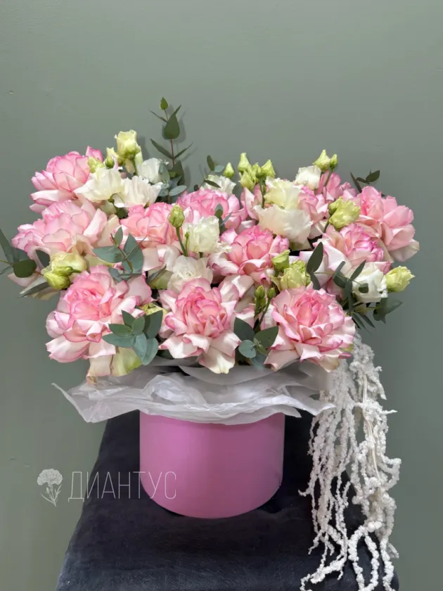 Откройте для себя воплощение утонченной элегантности с нашей эксклюзивной коробкой цветов «Французский шик». Это не просто букет, а настоящее произведение искусства, созданное с любовью и вниманием к деталям. Нежный эвкалипт придает композиции легкость и свежесть, а изысканная французская роза источает чарующий аромат. Белая эустома добавляет благородства. Шляпная коробка, выполненная в классическом стиле, станет стильным дополнением и долгим воспоминанием. Подарите себе или своим близким частичку парижского очарования и непревзойденного вкуса. «Французский шик» – это символ роскоши, нежности и истинной красоты. Этот букет станет идеальным выбором для особого случая или просто для того, чтобы сделать обычный день незабываемым. Позвольте себе окунуться в атмосферу французской романтики и утонченности. Закажите «Французский шик» уже сегодня и почувствуйте магию элегантности!