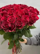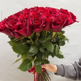 Представьте себе истинное воплощение страсти и элегантности – монобукет из 35 бордовых роз. Каждый цветок в этом великолепии излучает глубину цвета и неповторимый аромат, создавая атмосферу роскоши. Этот букет станет не просто подарком, а настоящим посланием о ваших самых сильных чувствах. Идеально подходит для выражения любви, восхищения или как символ особой даты. Безупречное качество роз гарантирует их свежесть и долговечность, радуя взгляд долгие дни. Подарите незабываемые эмоции с этим роскошным букетом, который скажет больше тысячи слов.